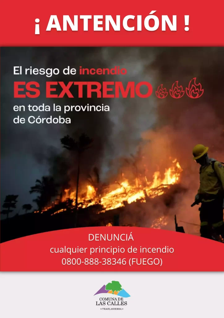 Por la abundante vegetación, en épocas de sequía, el riesgo de incendio es EXTREMO en las Calles y en toda la provincia de Córdoba.