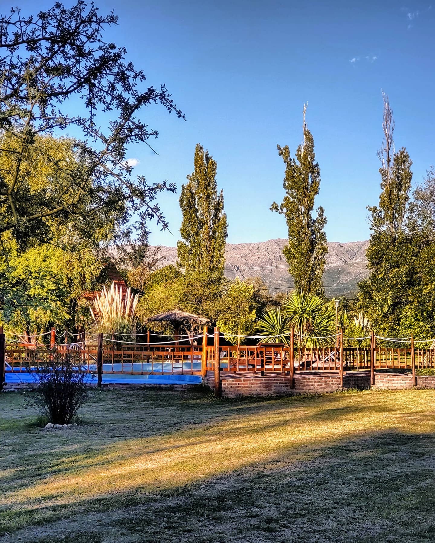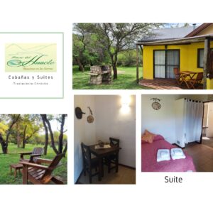 Complejo de 7 cabañas emplazadas en 1 y 1/2 ha. Cada cabaña se encuentra separada del resto por cercos vivos y un espacio de parque que le da privacidad. Vista a las sierras en un entorno natural y tranquilo. Para descansar y disfrutar en contacto con la naturaleza. Desayuno casero.